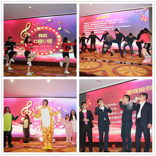 年會節(jié)目正式開始,激情的舞蹈、動聽的歌聲以及小品相聲等節(jié)目讓現(xiàn)場氣氛熱烈,在歡聲笑語中,有趣的游戲及抽獎環(huán)節(jié),更是使整個晚會現(xiàn)場高潮迭起。晚會不僅給大家?guī)砹藲g聲笑語,同時也讓同事之間彼此的心更加貼近。公司領(lǐng)導(dǎo)與員工親切互動、互相鼓勵,讓歌聲、掌聲、歡呼聲一直在會場上蕩漾,為全體觀眾奉獻了一場暖意融融的年會盛宴!
